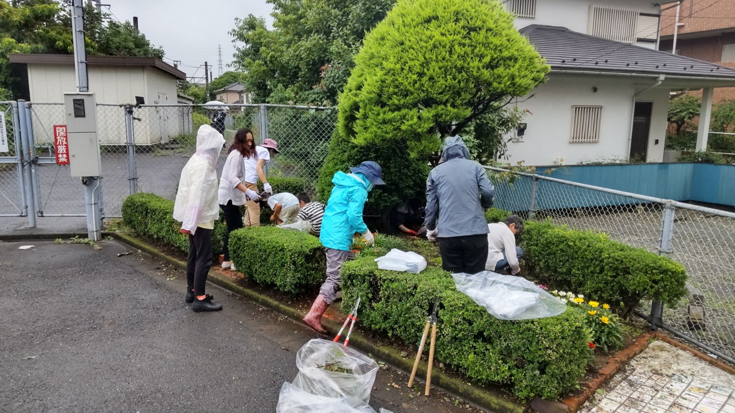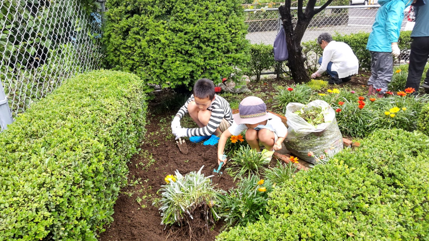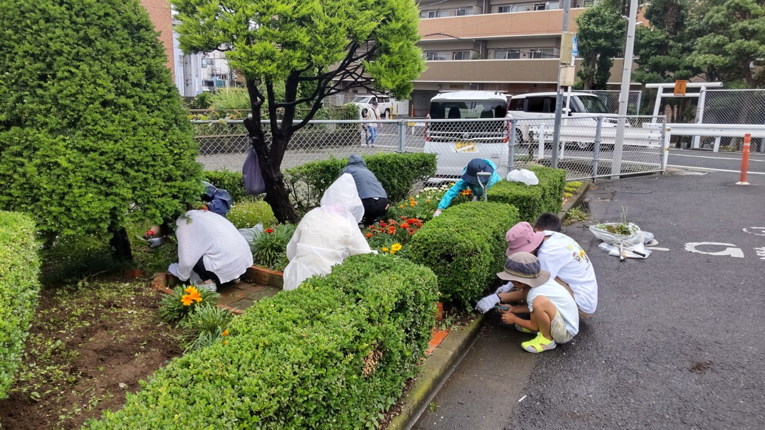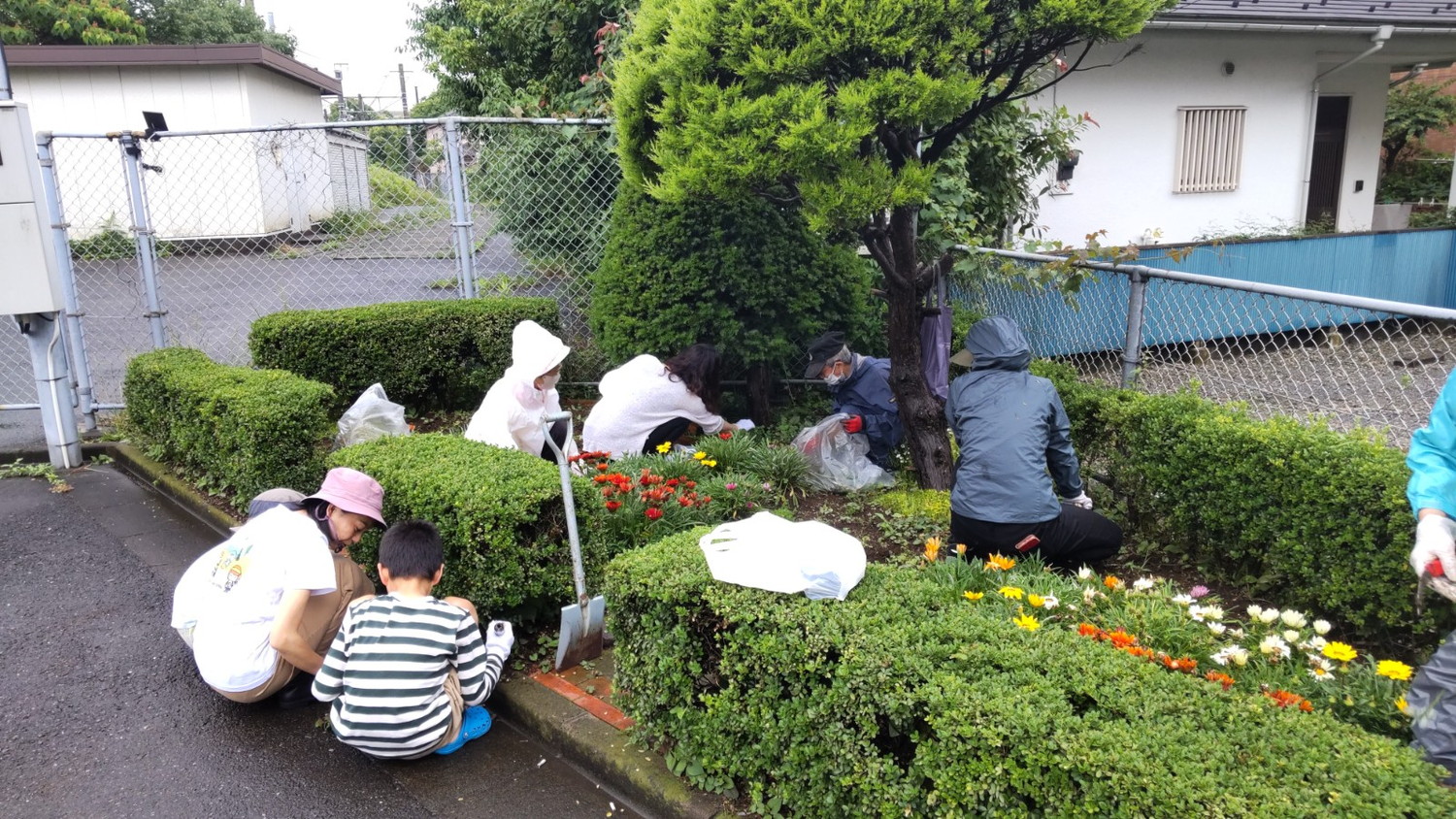 雨の中いつもきれいな花壇、皆さんお疲れ様でした。